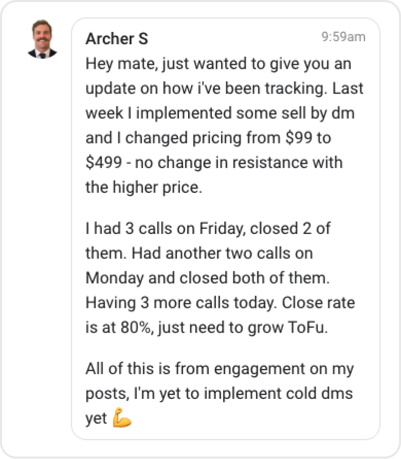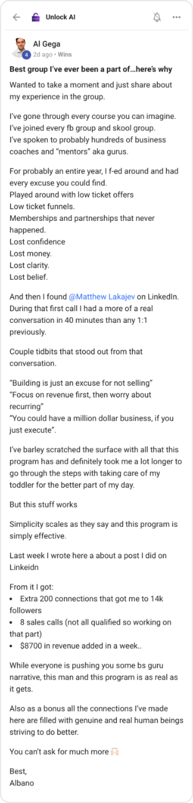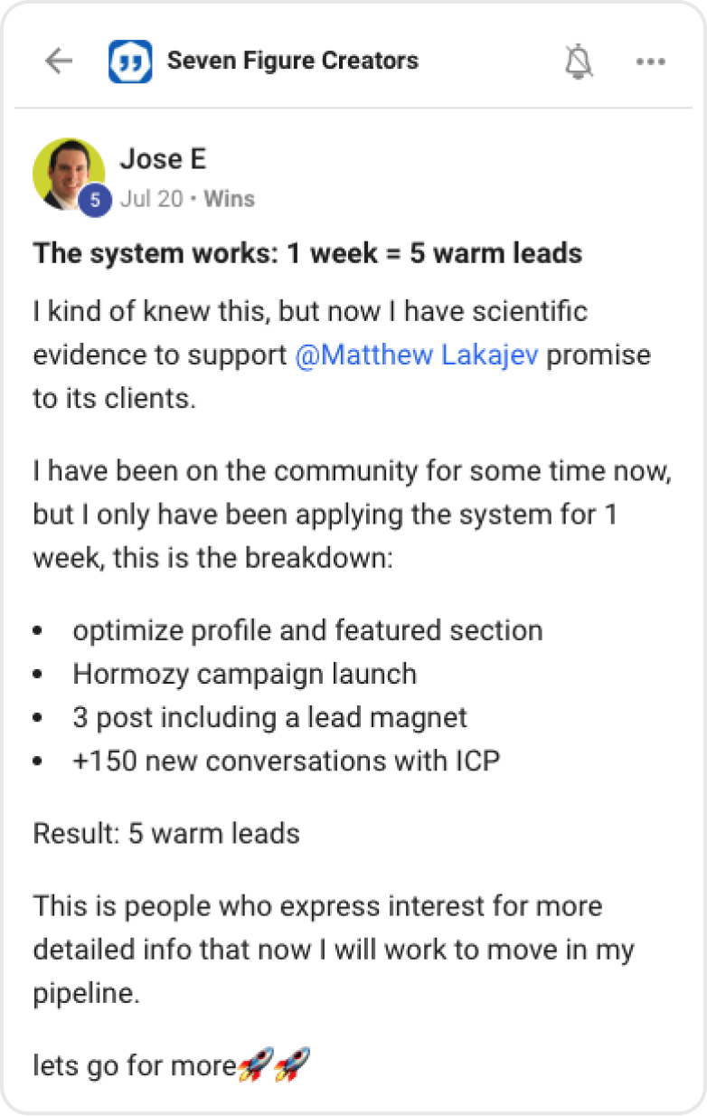 We have a lot of business owners in the program! It focuses on getting you 5+ warm leads a week on LinkedIn without spending any money on ads.