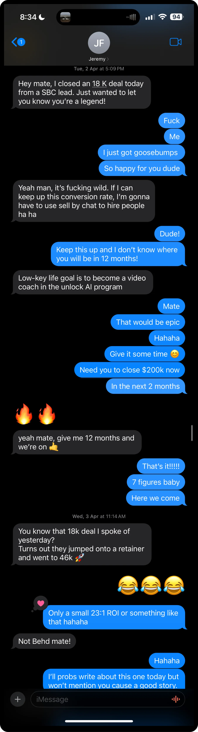 "You know that 18k deal I spoke of yesterday? Turns out they jumped onto a retainer and went to 46k 🚀."