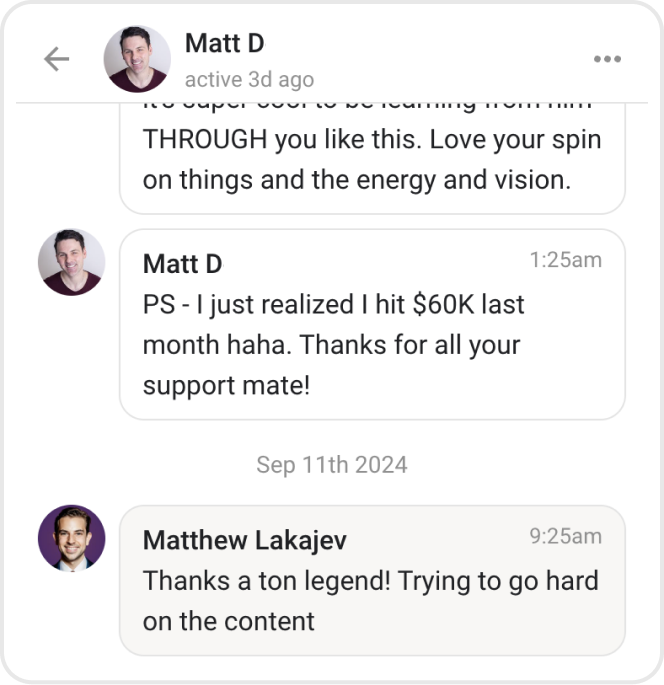 If you need an offer to sell, the Free Course is perfect. Ready to make $10k+ per month? Go for Six-Figure Creators. Already hitting ~$25k months? Seven-Figure Creators is your next step.